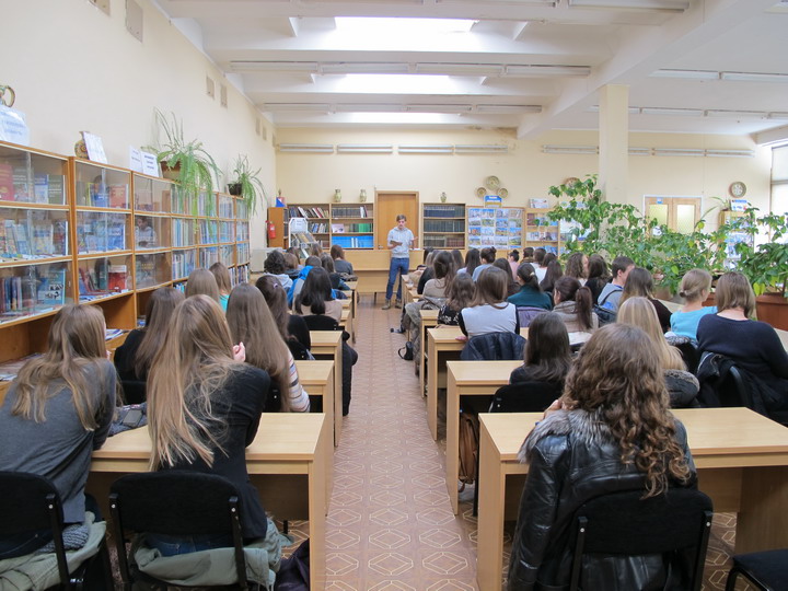 18 февраля 2015 года в читальном зале библиотеки студенты группы ТХ-31 присутствовали на встрече с современным украинским поэтом Павлом Коробчуком.
