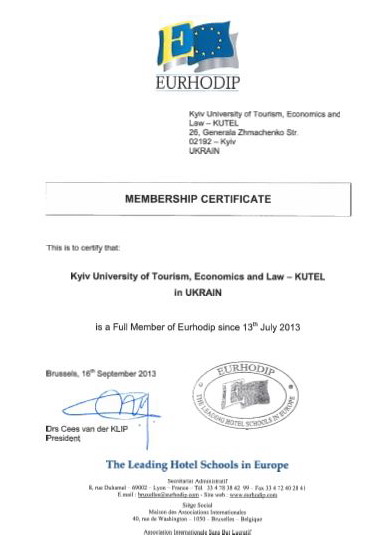 КУТЕП приєднався до Міжнародної асоціації провідних туристичних і готельних шкіл «Євродип». Набуття членства в цій авторитетній Асоціації розкриває перед студентами КУТЕП нові можливості: